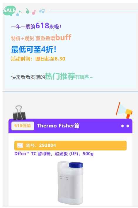 一年一度的618来啦!特价+现货 双重叠增buff最低可至4折!活动时间:即日起至6.30,赛默飞和BD明星产品速览2025-06-04 15:03:00.0