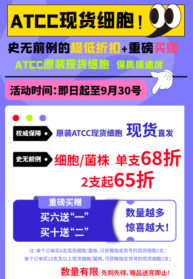 史无前例!ATCC 现货细胞促销力度拉满:不止 65 折,更有买赠加码~2025-08-20 14:40:00.0