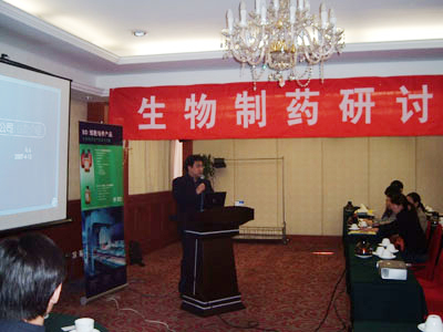 The symposium was held in a warm atmosphere. Mr. Jagdish — Biopharmaceutical Technical Expert of BD Asia Pacific, presented “The Leading Technologies in the Biopharmaceutical Industry” and “The prospect and the Application of Non-animal Origin Culture Medium”. Mr. Zhu Xican—Technical Expert of GE Health Care, gave a brilliant speech on the technology of micro-carriers which are usually used in high-density culturing of animal cells, with illustrations from his rich practical operation experiences. His speech gave the audiences a deep impression. Ms. Zhang Yi—Senior Technical Engineer of 3M, introduced the application of the depth filtration (Zeta Plus) in the biopharmaceutical industry. After the symposium, many conferees had a deep discussion with the experts on the biopharmaceutical industry and related technologies.